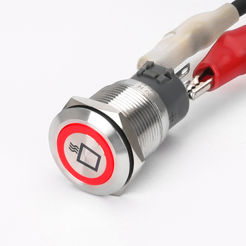 Interruptor de botón momentáneo, 10A, 250Vac, 19Mm, 1No, Ip67, anillo impermeable, Led