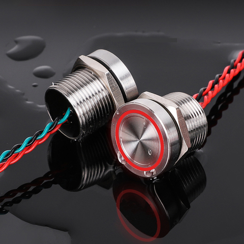 Interruptor táctil capacitivo Ip68, resistente al agua, 16mm, cabeza de ranura momentánea de Metal, anillo de 1NO12v, interruptor piezoeléctrico de botón de luz LED